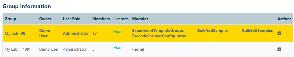 - Modules – which additional plug-ins/functional modules are installed for the group or subgroup