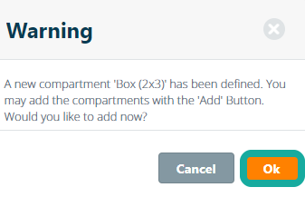 A confirmation message will be shown. You can add compartments using the add button or add a compartment by clicking OK.