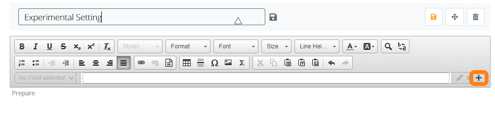 To add a formula to a protocol, open a protocol section in editing mode and click on the + button in the text editor's formula bar.
