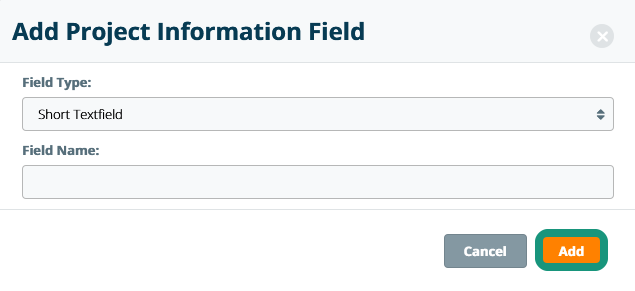 Optionally, you can store additional information for a project by adding custom project specification fields. You can add either a Text Field to enter additional information or a File Attachment Field to link a project file