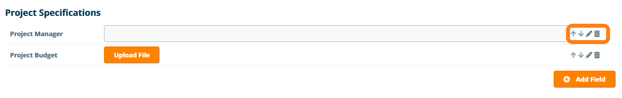 Once a field has been added, you can update, remove or change the order of the fields using the icons inline with the custom field.