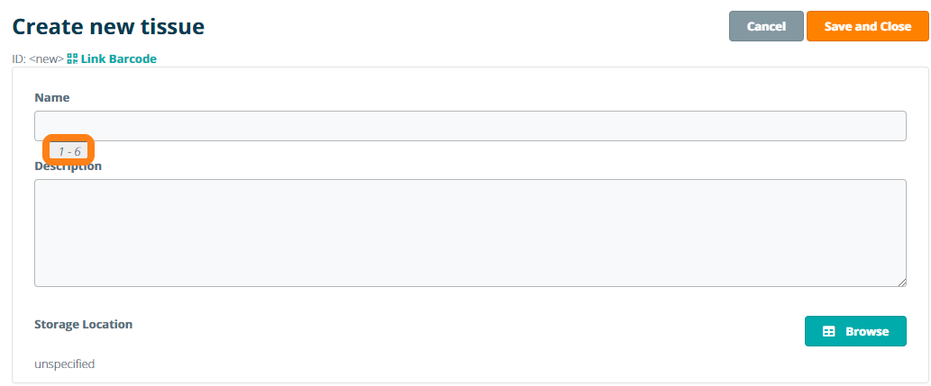 Click Proceed to enter the sample series information. All samples within the series will be assigned the information specified in the form. When the incremental numbering option is selected, the incremental number is displayed behind the sample name. Click Save and Close to create the sample series.
