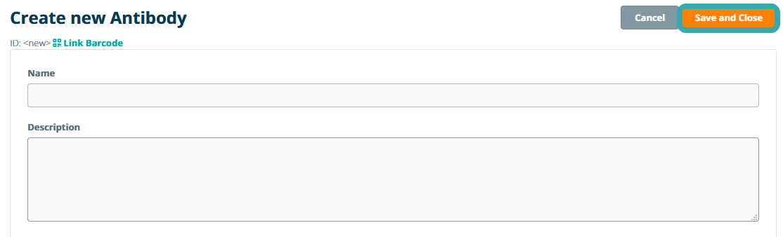 Next, input the sample details into the sample information form. There are standard fields to enter a Name, a Description, the Storage Location and Notes, as well as sample specification fields, which are the custom fields that you can define when configuring your sample types. If you have the Supplies module enabled, you can also track sample quantities.