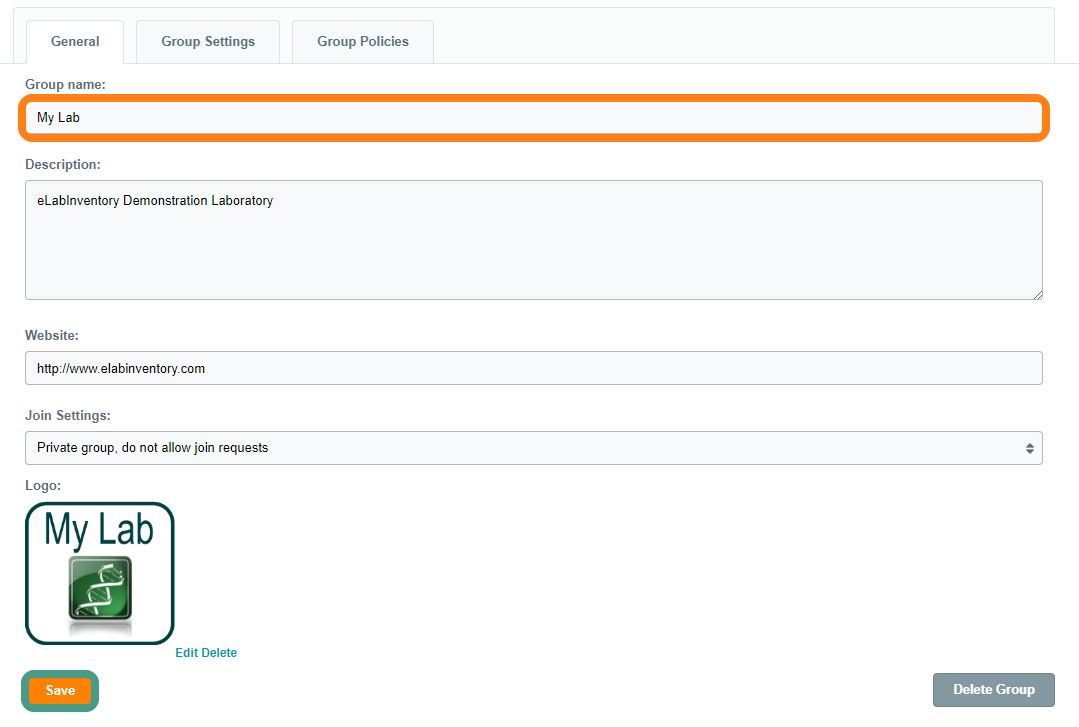 To change the group name, navigate to Manage Groups and click Edit. Changing a group name has no consequences, as every group has a unique group ID. Note: only users assigned the Administrator role within a group may change the group's name.