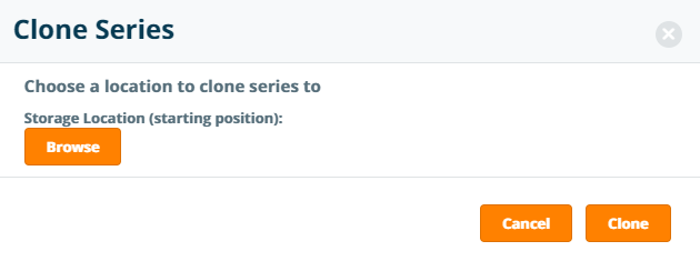 In the pop-up window, click Browse to select the location where you want to store the to be duplicated series. Click Clone to create the cloned series. All samples in the series are duplicated and grouped into a new sample series.