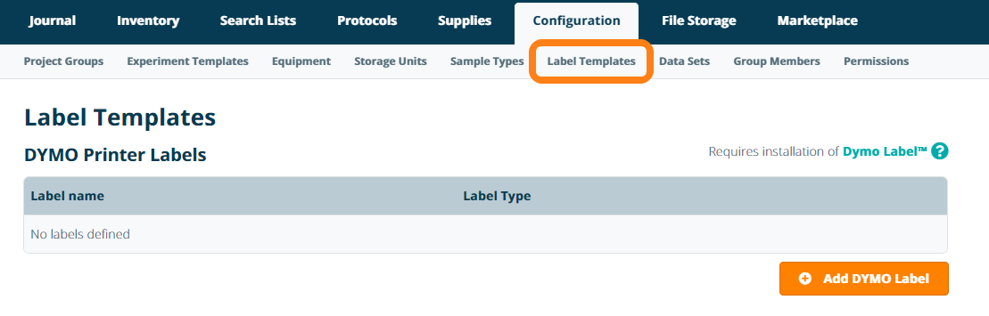 - Label Template - the label template (templates of regular DYMO, and cryo and/or chemical resistant labels of LabTag and Diversified Biotech supported)