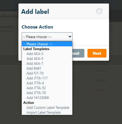 In the next step, you can choose to add one of the default templates, add a custom template or import a template. The recommended option is to request a ZPL label template of the vendor of the labels you purchase or to create the label template in the software that is provided in the printer software. After you exported or received the formatted label template (.zpl file) you can upload the label template. When creating a custom label, you can also copy and paste label templates from one of the various free ZPL label template generators such as Labelary