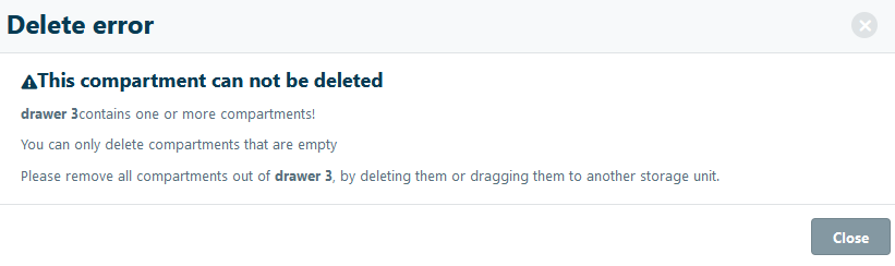 To delete a compartment, such as a section, rack, shelf or box, you can right-click on the compartment you want to delete.