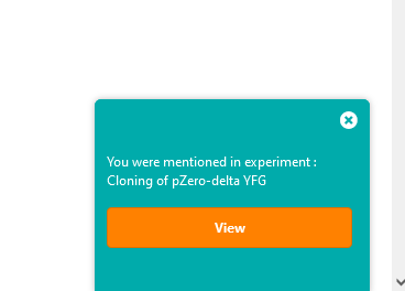 Users will receive a notification that they have been mentioned in an experiment. Notifications appear as a flag in the lower-right corner of the browser; if you are using the eLabJournal Mobile App, you will also receive a notification on your mobile device.