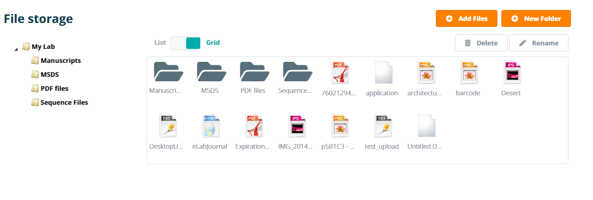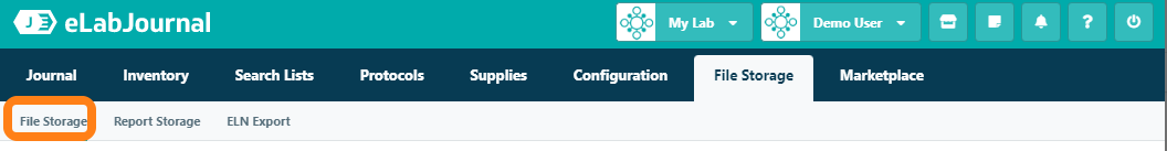 In eLabJournal you can store files such as sequence files, PDF files of scientific literature and MSDS sheets and link those to stored samples. Navigate to File Storage in the File Storage menu.