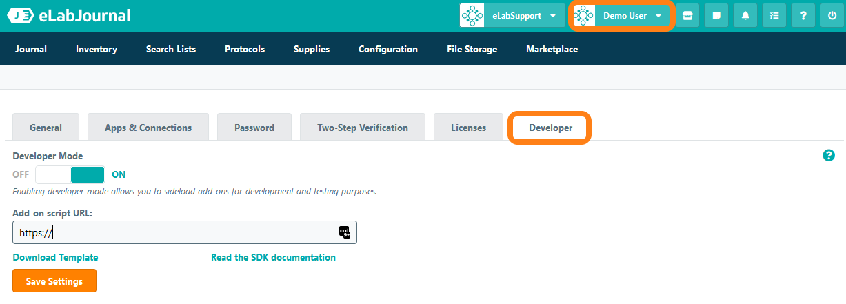 - Enable the developer mode for your account - Switch on to allow side-loading of the SDK add-on for development and testing