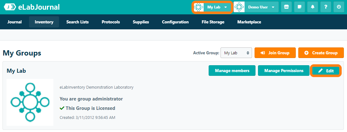 Navigate to My Groups by selecting Manage Groups from the group dropdown menu. Then click the Edit button for the target group.