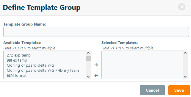To define a study template consisting of multiple chained experiment templates, select the Experiment Templates in the left panel and click the arrow icons to move them to the right panel. Note: the same experiment templates can be used in multiple study templates. When updating an experiment template, be aware that this will affect all study templates where the experiment template was used.