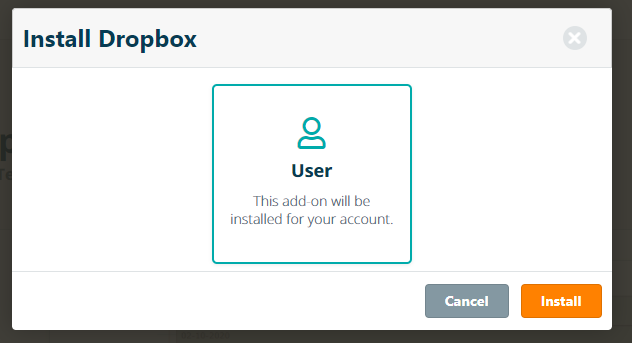 Select the preferred installation scope (i.e. add-ons can be installed on different levels, including system, organisation, group or user) for the add-on and confirm the installation by clicking Install.
