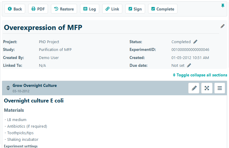 This guide will walk you through the basics of the Electronic Lab Notebook, eLabJournal. Through the documentation, you will learn how to efficiently organize your research data, collaborate and share information, and streamline communication within your lab. You can also read about the sample and inventory tracking system, eLabInventory as well as the protocol/SOP management system, eLabProtocols. In eLabJournal, these two modules are seamlessly integrated so that you can easily use protocols as templates for experiments or link to samples from the lab inventory within your digital lab notebook.