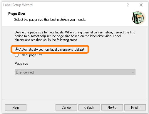 Then in Page Size choose Automatically set from label dimensions (default)