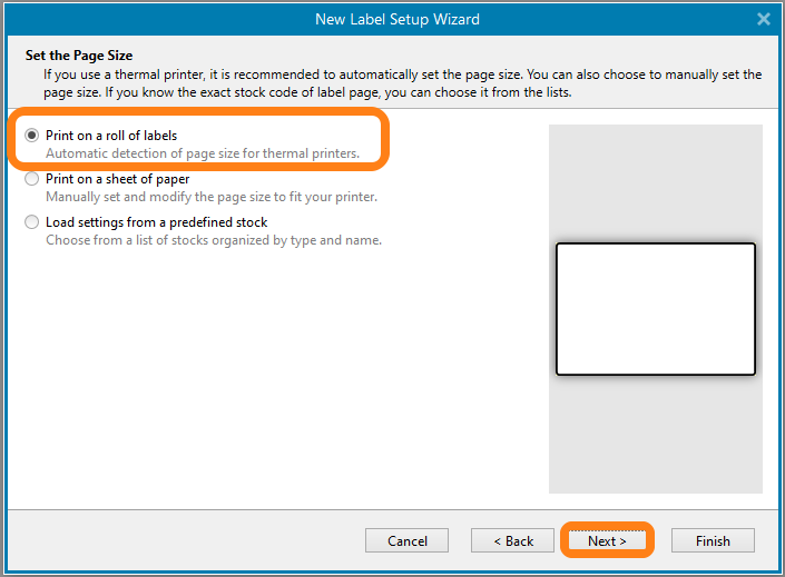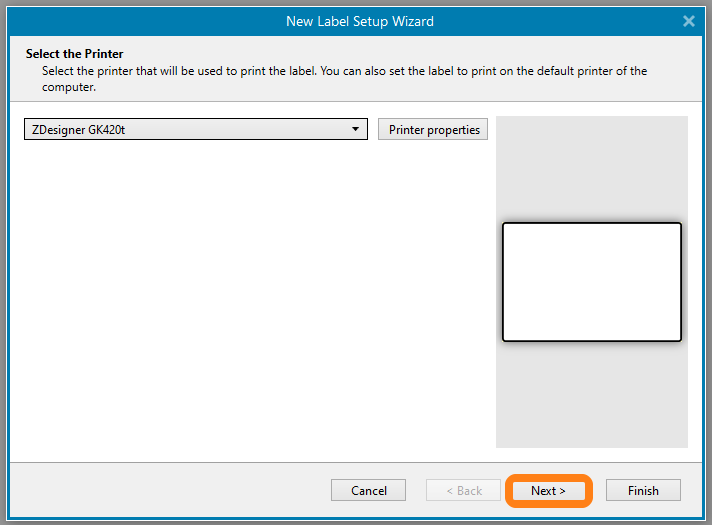 In ‘Label Dimensions’ change the Label width and height according to your labels. In this example, we use the Zebra 2000D / 1000T labels. The ‘Unit of measure’ can be changed in the lower right corner of the screen. When dimensions are set click Finish.