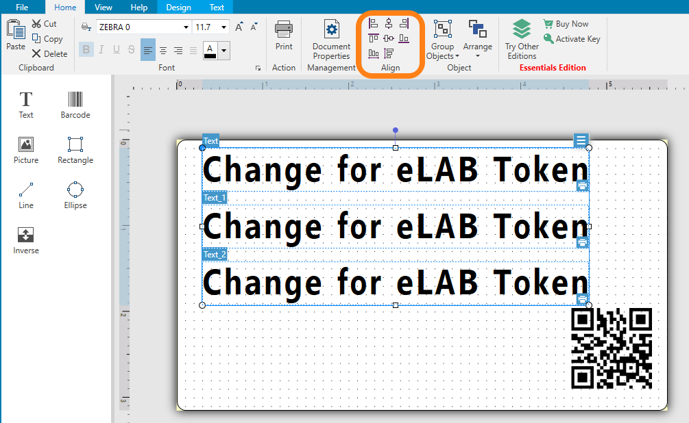 Now we have a text field on our label, click the menu button and go to Style make sure that Zebra 0 is set as font