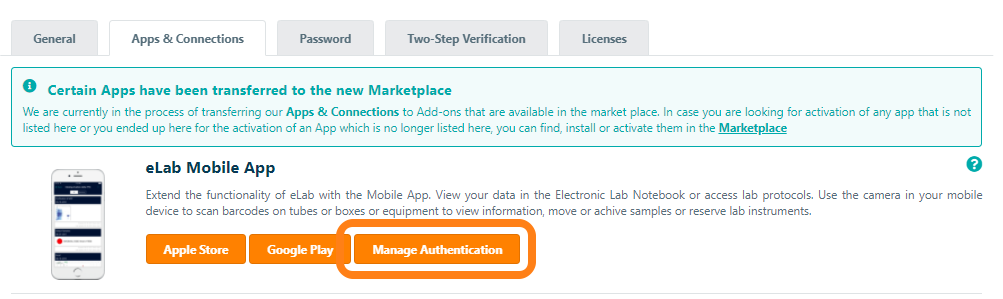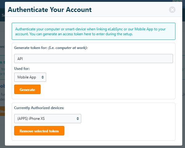 In the Mobile Apps section, click Manage Authentication to generate an access token for your mobile device.