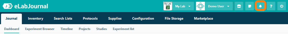 When a notification is sent, it appears as a small message in the lower-right corner of the eLabJournal application. Note that if you install the eLabJournal Mobile App, you will also be able to receive notifications on your smartphone or tablet.