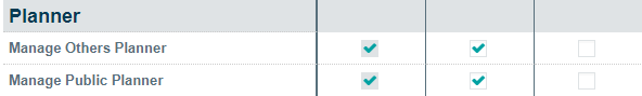 Navigate to Configuration – Permissions or to My Groups - Manage Permissions to change the rights for the equipment planner. The following equipment planner permissions are supported: