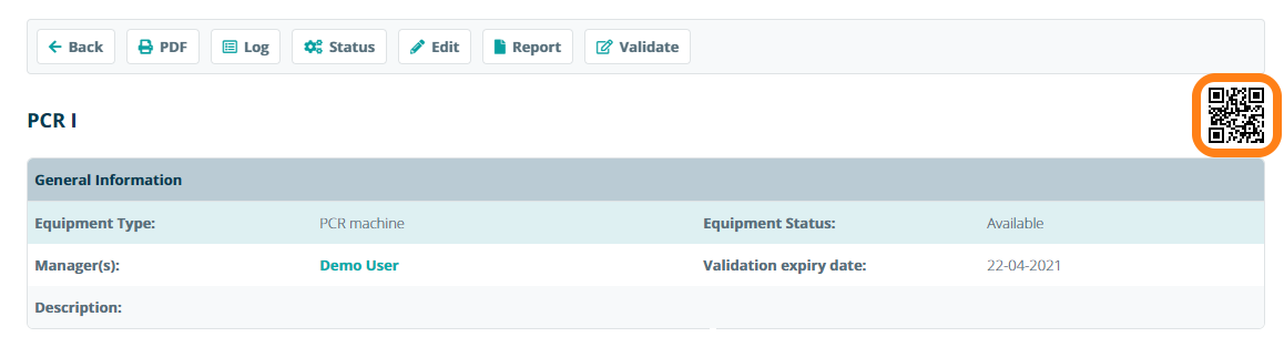For labs that do not have a DYMO LabelWriter© or Zebra (ZPL) label printer, it is possible to use the generated 2D barcode which is displayed on device information sheet.