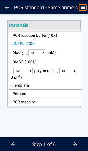While working in the lab you can use your mobile to browse through personal, group-shared and public procedures. Note that in the eLabJournal, publicly shared procedures are openly accessible to anyone on the internet, while for the eLabJournal Private Cloud or eLabJournal On-Premise procedures are only shared within your company or institute if the system is only accessible on your local network.