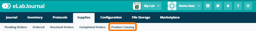 Tthe Product Catalog serves as a library of consumables and chemicals that are frequently ordered for the lab. Navigate to the Product Catalog page under the Supplies tab to view the catalog.