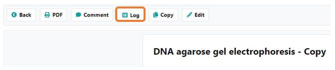 eLabJournal automatically logs any changes to your protocol. To access the log, open a protocol and click the Log button.