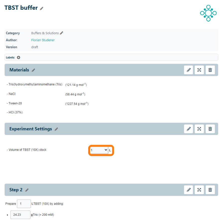 Users can write and manage protocols or standard operating procedures (SOPs) in the Protocols module. With a few clicks, users can easily customize their protocols and insert dynamic fields to automatically perform complex calculations in their protocols. Completed protocols can be published and shared with other lab members for use in the electronic lab notebook. In this way, the lab can efficiently streamline its research methods and ensure that all lab members are using the same standardized version of an SOP or procedure.
