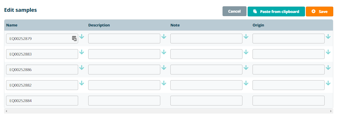 To update multiple samples from the same sample type, you can install the free Sample Batch Update add-on from our Marketplace.
