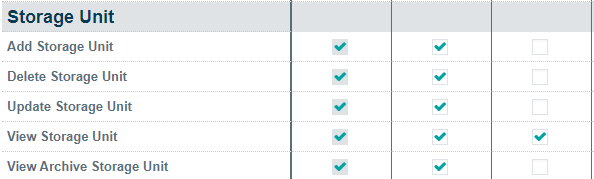 - View Archive Storage Unit – required for viewing the archive of a storage unit