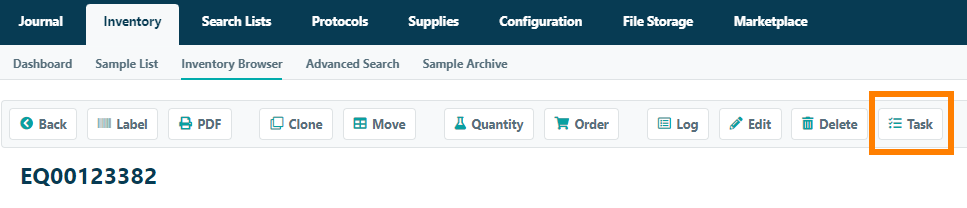 For customers with eLabJournal, users can additionally create tasks that are associated with a specific experiment. To create a task for an experiment, navigate to the experiment page and click the Task button. Once the task has been created, a link to the experiment will be listed in the Associated with column on the Tasks panel.