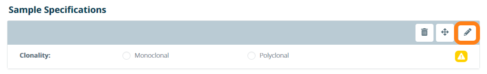 To update a sample field, navigate to Sample Types under the Configuration tab and click the Edit icon to open a sample type's form editor.