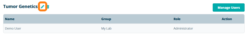 You can update the Project Group to rename the group or to assign administrators. Navigate to Project Groups and and click the Edit icon.