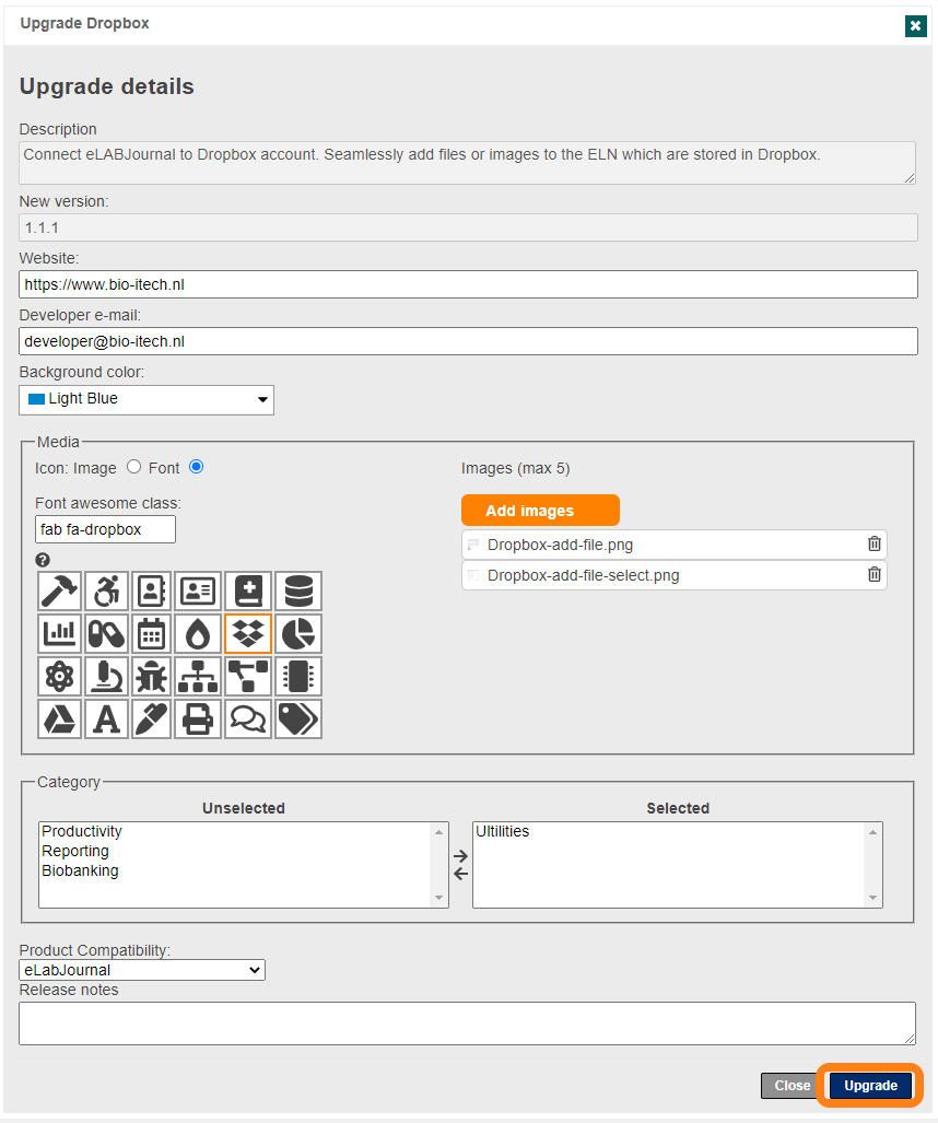 All assets of the add-on such as the category, icons and images are automatically loaded and can be changed in needed. Click upgrade to complete the manually updating of the add-on in your system.