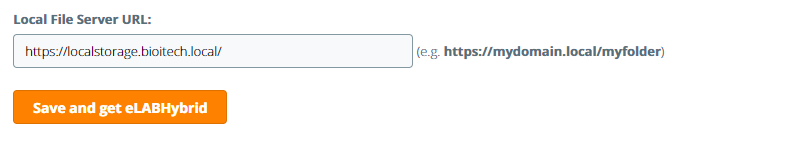 Select your organisation and enter the Local File Server URL as configured during the file server configuration. Note that it is important to make sure that the connection is secured (https:) as specified in the provided eLABHybrid technical documentation. Click Save and get eLABHybrid.