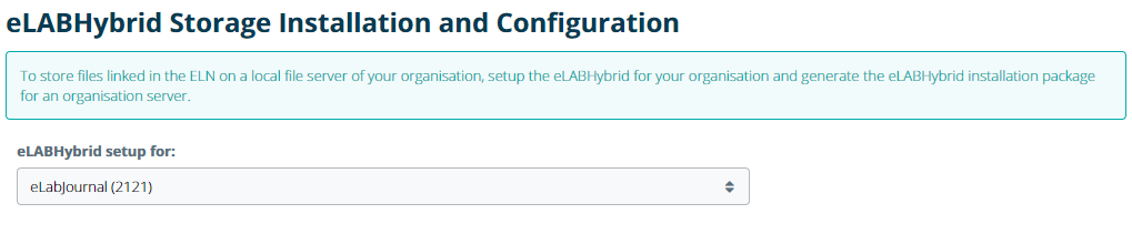 For organisations interested in setting up eLABHybrid, please contact us to request the technical specifications installation of the local server. eLABHybrid can be installed Linux webserver or a Synology Network Attached Storage (NAS). After installing the local server according the specification, the Private Cloud system administrator can set up eLABHybrid as follows. Labs working in the eLABJournal Cloud, please contact us for more information about pricing and installation instructions.